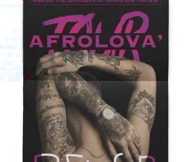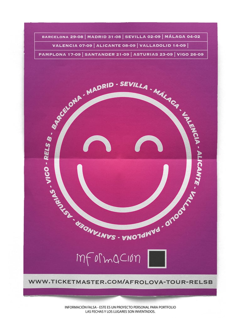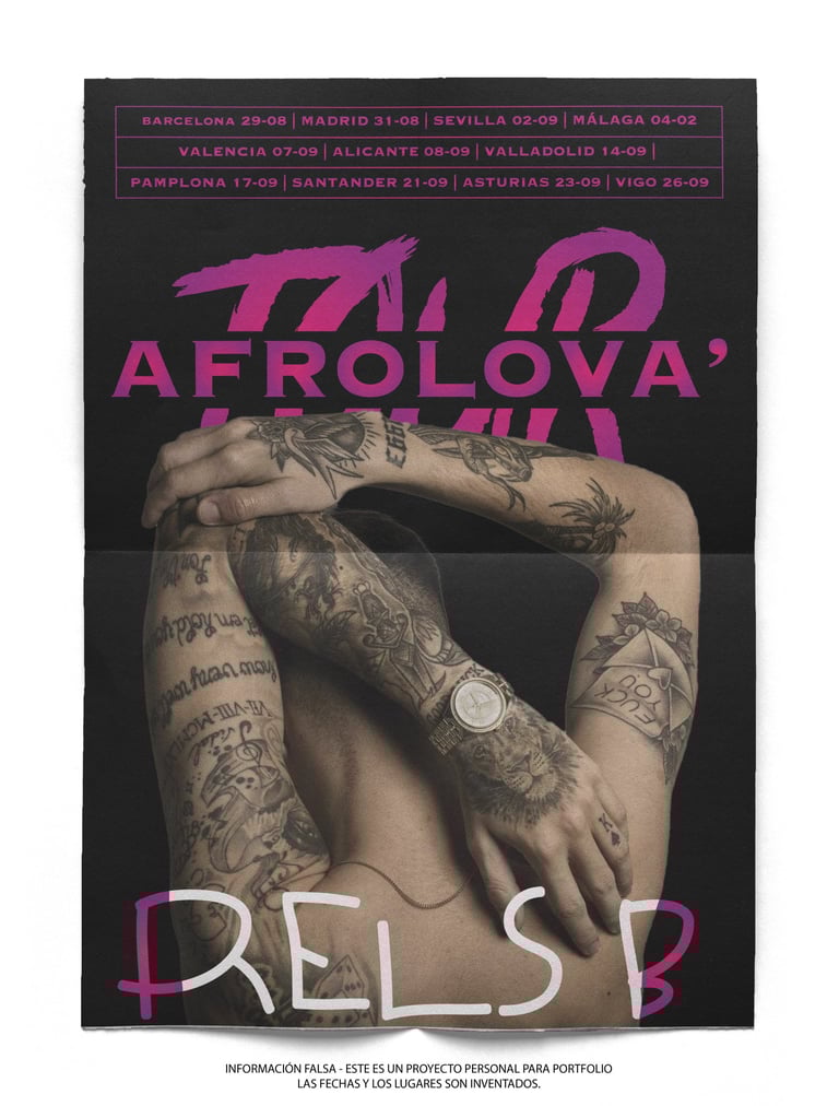Rels B es un cantante mallorquín y su música suena en las noches, por eso los colores elegidos son el negro y el degradado de rosa.